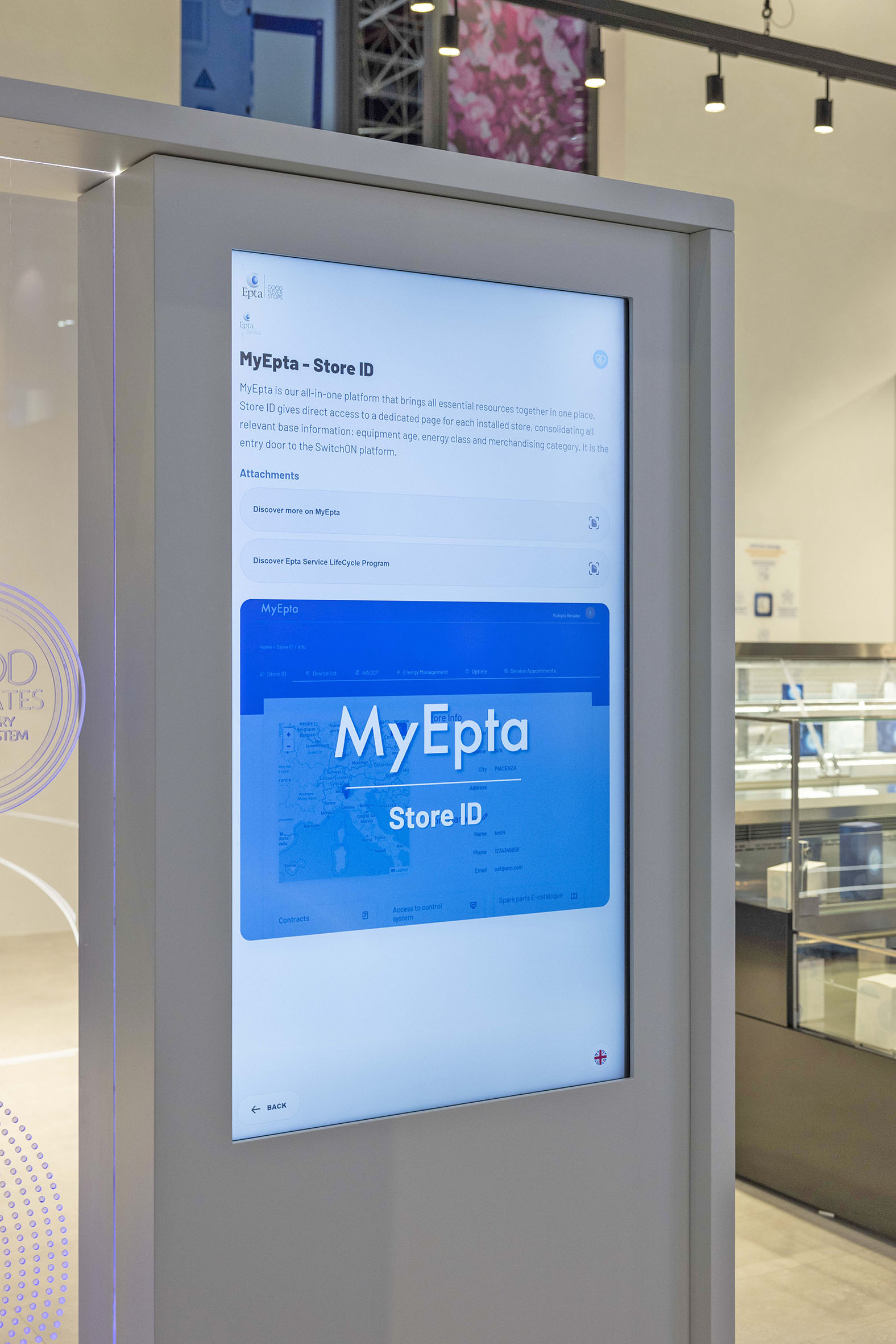 La piattaforma MyEpta si caratterizza per un’architettura modulare, da personalizzare in funzione delle specifiche esigenze di ciascun Cliente. Quest’ultima si articola in due modalità intuitive di utilizzo: ASSET ID, un unico punto di accesso ai dati associato a ogni attrezzatura Epta, tramite un tag NFC applicato direttamente al banco frigorifero. Tale modalità consente una diagnostica più rapida, una manutenzione più efficiente e una visione più precisa del prodotto durante il suo intero ciclo di vita; STORE ID: un hub centralizzato, caratterizzato da un’interfaccia intuitiva, per consultare in tempo reale l’elenco delle attrezzature installate, la relativa documentazione, i servizi attivati, contratti, KPI e dati chiave, a vantaggio di una visibilità e controllo in tempo reale. Inoltre, Store ID offre un supporto decisionale basato sui dati, a sostegno delle scelte consapevoli di manutenzione e degli investimenti. Un plus che consente ai retailer di ottimizzare le performance operative e pianificare gli interventi in modo più efficace nel tempo.